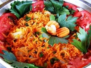 U činiju staviti krompir, posuti šargarepom i mladim lukom i preliti pripremljenim dresingom. Paradajz iseći na kolutove i poredjati po obodu salate. Rashladiti u frižideru oko pola sata.