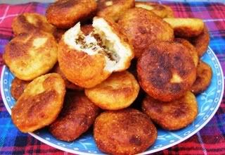 Izmešati sve sastojke, pa kada se masa ujednači, prekriti je folijom i ostaviti u frižideru 40 minuta. Formitrati loptice veličine oraha, malo ih stanjiti i pržiti na zagrejanom ulju.