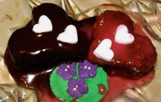 Modlom oblika srca izvadite paran broj komada, a ostatke iseckajte i izmešajte sa džemom i rumom. Ovom masom premažite srca i spajajte po dva.